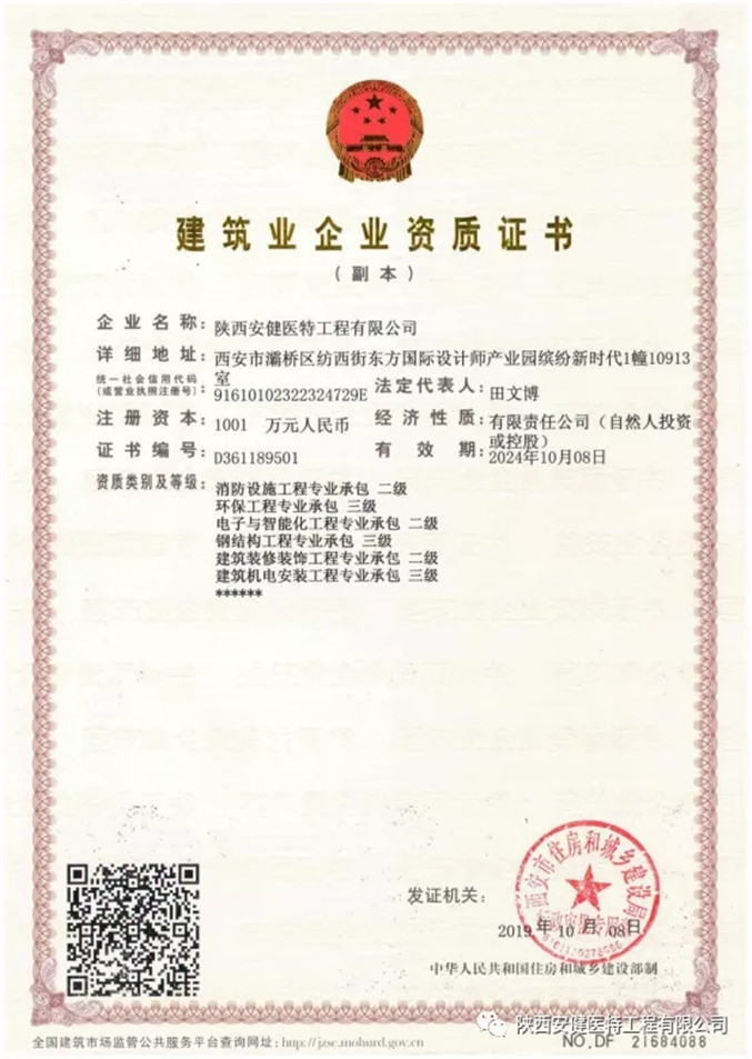 富平县医院创建于1935年,曾担任过抗日后方救死扶伤重任,地处渭北高原的富平县医院,深入贯彻“以病人为中心”服务宗旨,坚持“医德为先、人才为本,艰苦创业、科技兴院”方针,不断深化改革、加快发展,综合实力成为全省具有较大影响的一家县级医院,曾先后荣获:省级“白求恩精神奖”;国家卫生部“二级甲等医院”;联合国卫生组织“爱婴医院”;省级“文明单位标兵”;省级“文明窗口示范单位”;全省“十佳医院”;全省卫生系统“创佳评差”最佳单位;省级“先进消防安全重点单位”;省级“百姓放心”医院。(摘自网络) 我公司于2020年10月15日承接富平县医院发热门诊放射机房(CT机房、乳腺机房)建设项目,现正在施工进行中~ 陕西安健医特工程有限公司位于西安市,主要从事医院洁净手术部、ICU、CCU病房、血液病房、隔离病房、中心供应、实验室、配液室等净化工程的设计与施工。医院DR/DSA/CT/数字胃肠/骨密度/C型臂/SPECT/核磁共振等机房射线防护及屏蔽装饰工程设计安装及施工。医学、工业等方面的射线防护工程及核医学、同位素射线性污水处理工程。 公司始终坚持“以科技为先导”,不断致力于新产品、新技术、新工艺的引进与开发,以建造符合《规范》与《标准》的现代化医院建设为己任。公司拥有完整的测试仪器和专业检测机构合作,为确保每一项工程,每一项技术指标达到要求提供了保障。我们视每一项工程、每一件产品都是“安健医特的形象”。公司将以诚实守信、求真务实、服务至上、开拓创新的精神,创建医院优质工程,与社会各界真诚合作,共创辉煌。
