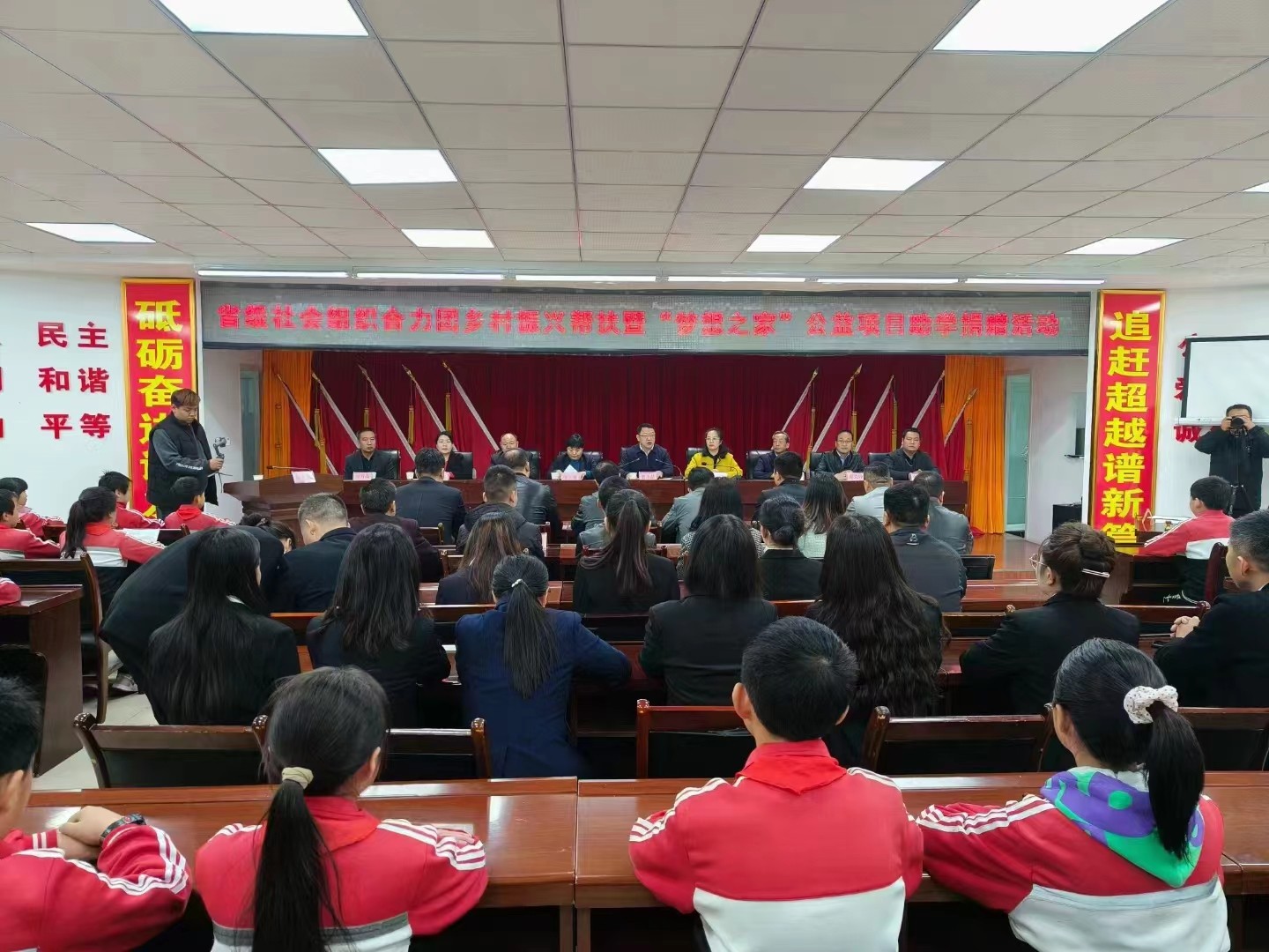 活动由柞水县人民政府、省级社会组织乡村振兴合力团共同主办,柞水县科教体局、柞水县民政局、柞水县乡村振兴局承办,陕西省帮帮乐乡村发展协会、陕西省神木市民生慈善基金会协办。活动由柞水县副县长王茂荣主持,县委常委、纪委书记曹永喆出席并讲话。合力团团长、陕西省帮帮乐乡村发展协会会长卞爱,陕西省神木市民生慈善基金会秘书长贾玉平,陕西省帮帮乐乡村发展协会党支部书记严继周,柞水县科教局局长赵世海、民政局副局长周万品,乡村振兴局副局长李长生,红岩寺镇党委书记李茜,陕西省帮帮乐协会副会长、陕西安健医特集团股份有限公司董事长田文博等领导出席。
